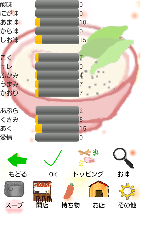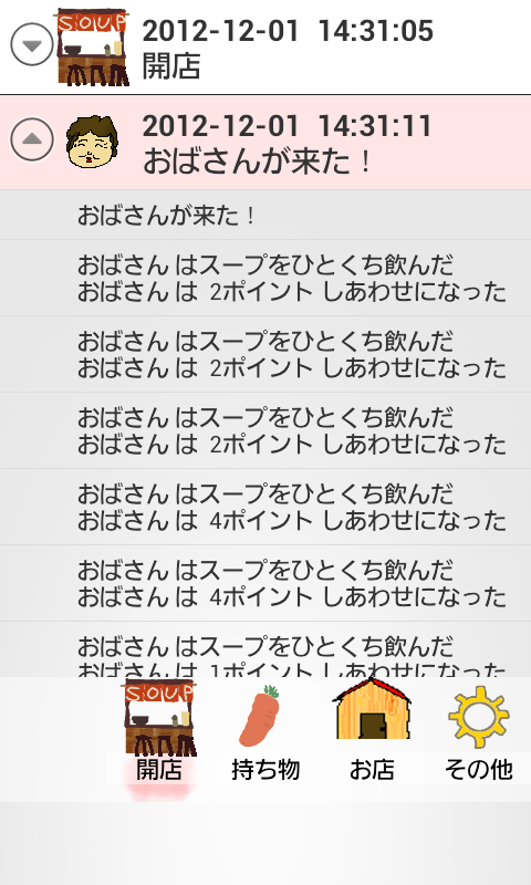 新作Androidアプリにつきまして 投稿日時: 2012年12月1日 投稿者: つかもーる 返信 表題の件、のんびりまったり放置系のスープ煮込みシミュレーション+放置系RPG?なゲームのβ版をリリースいたしました。今年の冬は無茶苦茶寒いので、少しでも暖かい感じになっていただければ幸いです。 続きを読む → 共有: Facebook で共有するにはクリックしてください (新しいウィンドウで開きます) Facebook クリックして X で共有 (新しいウィンドウで開きます) X